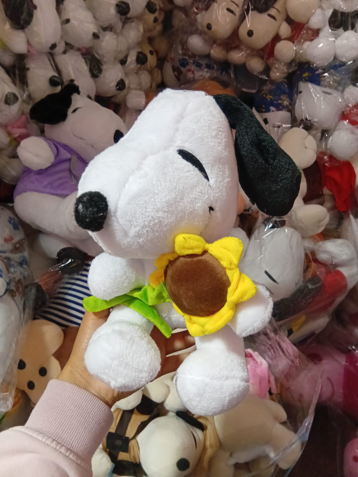 Peluche de Snoopy tierno con tulipán amarillo y girasol.Antialérgico